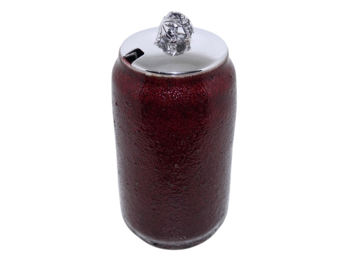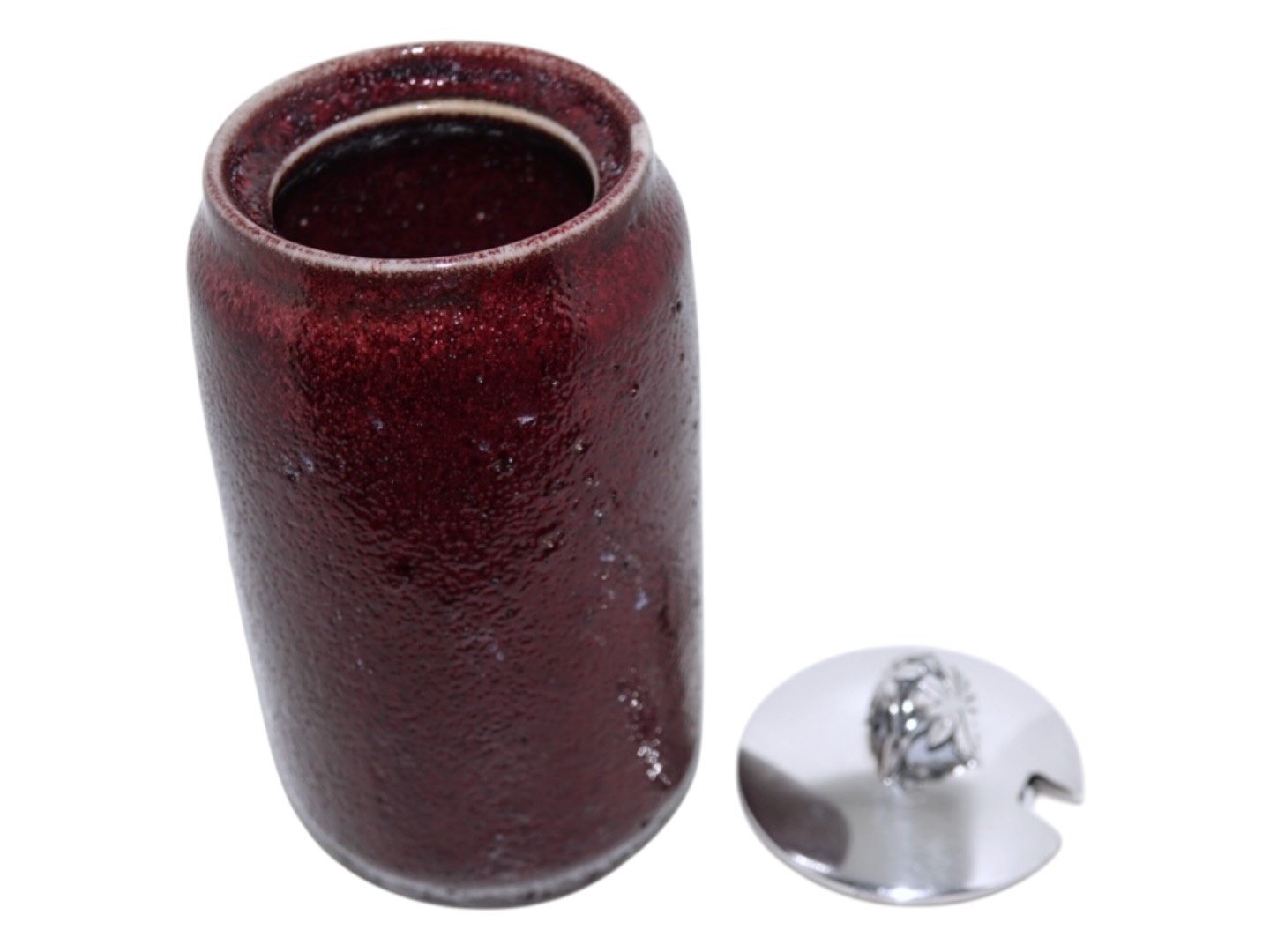 Vase med okseblodsglasur og sølvlåg