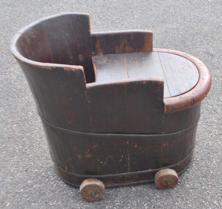 Holzbadewanne für Kinder, 19. Jahrhundert.