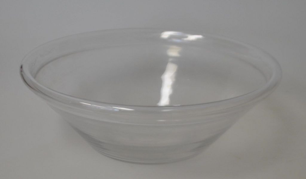 Milchschalen, 19. Jahrhundert. Dänemark. Klares Glas mit gefaltetem Rand. Höhe: 5,2 cm. Durchmesser: 15 cm.