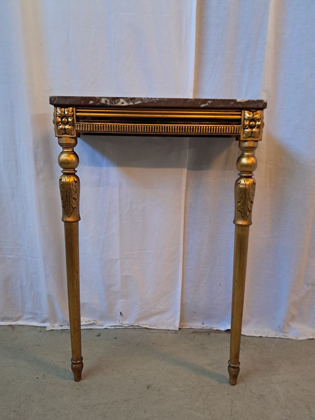 Guldmalet konsol med marmorplade, fra 1920erne.