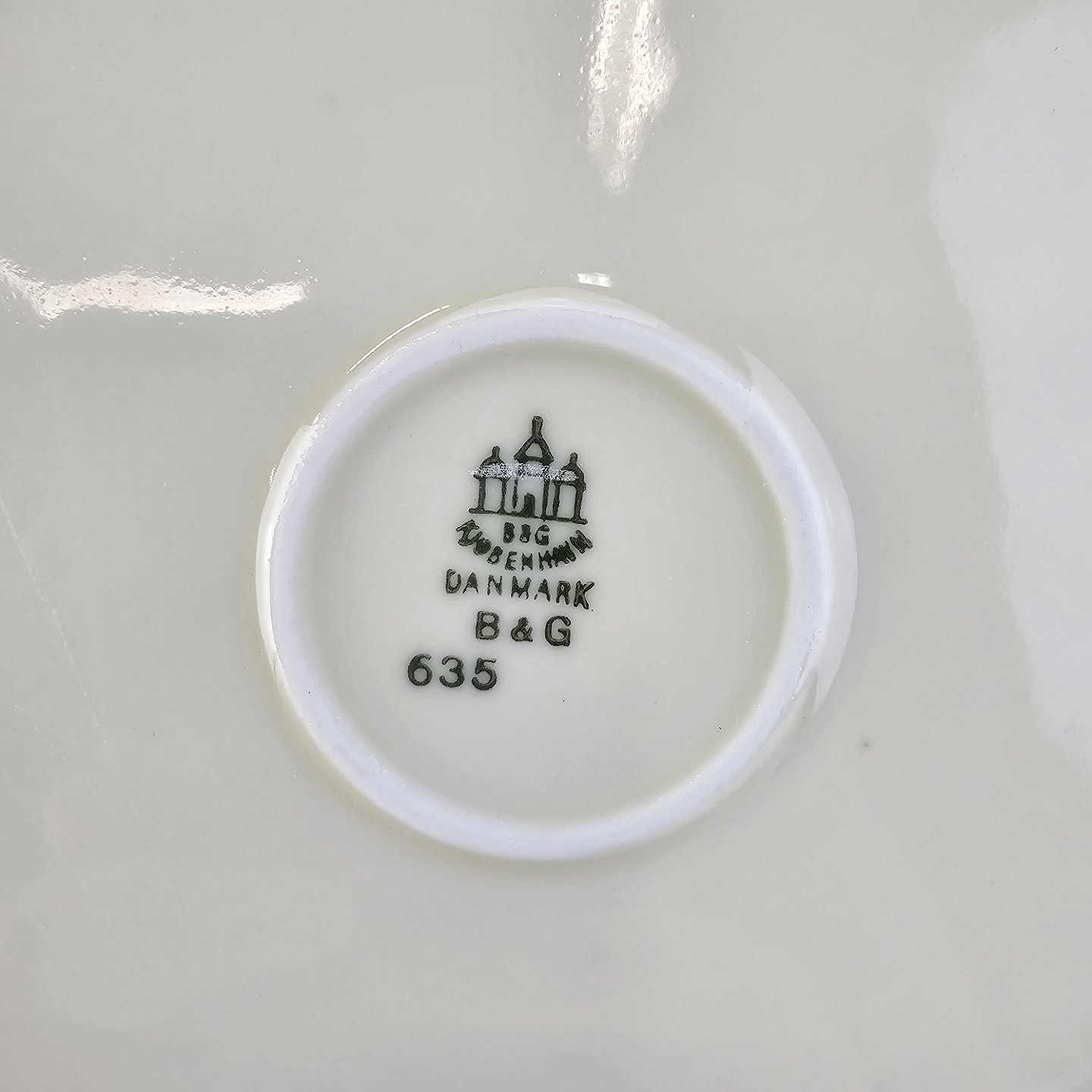 Rundt fad med hanke af porcelæn fra stellet Prik 25