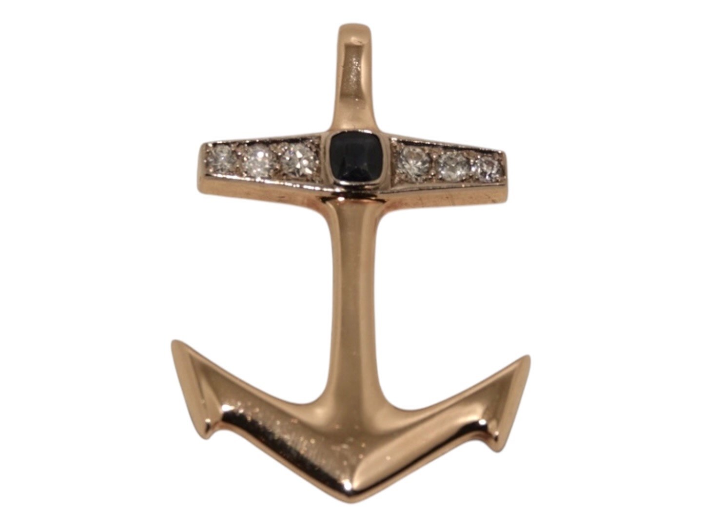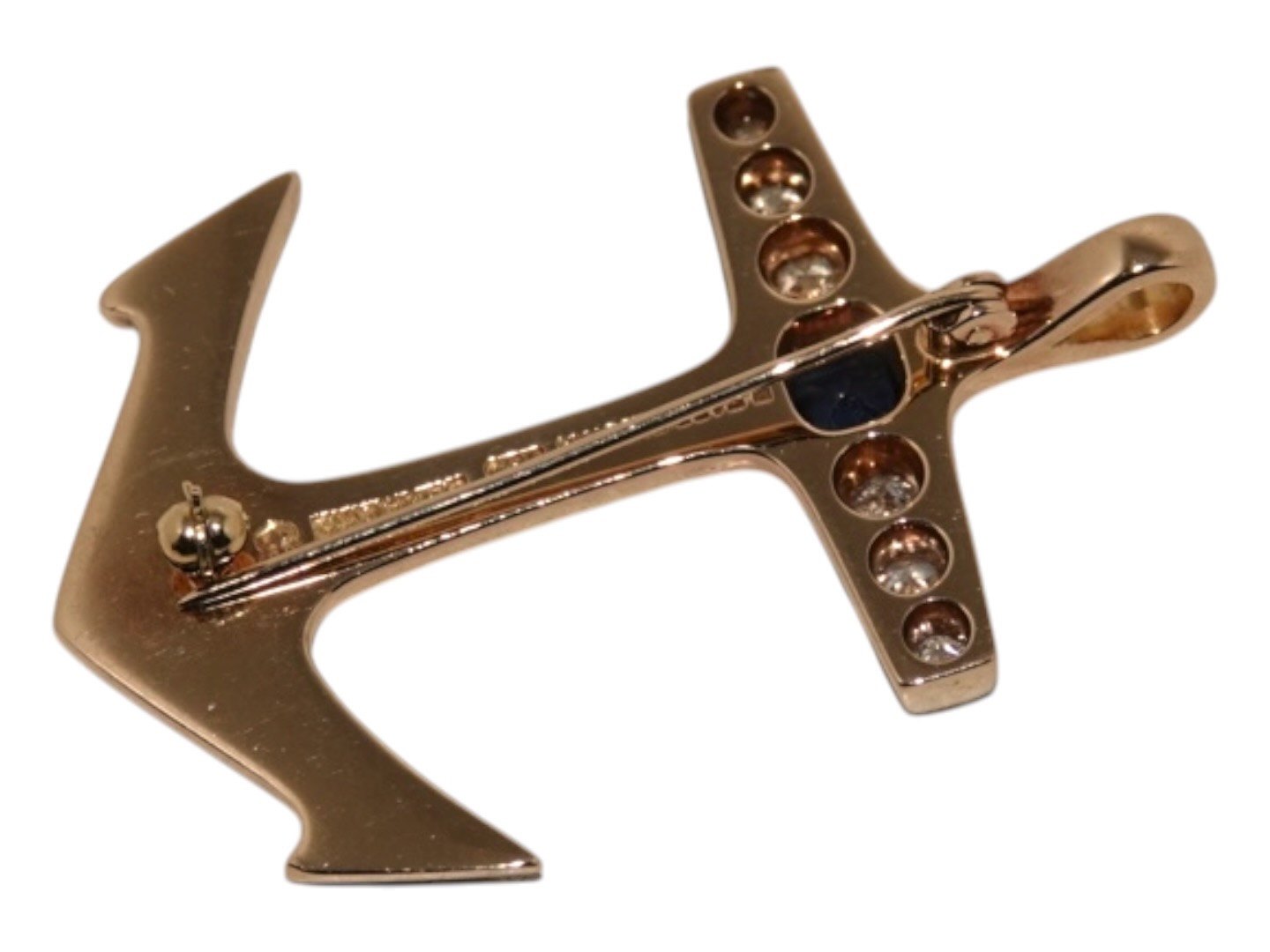 Stort vedhæng / broche i form af anker med en ret stor safir og seks store diamanter