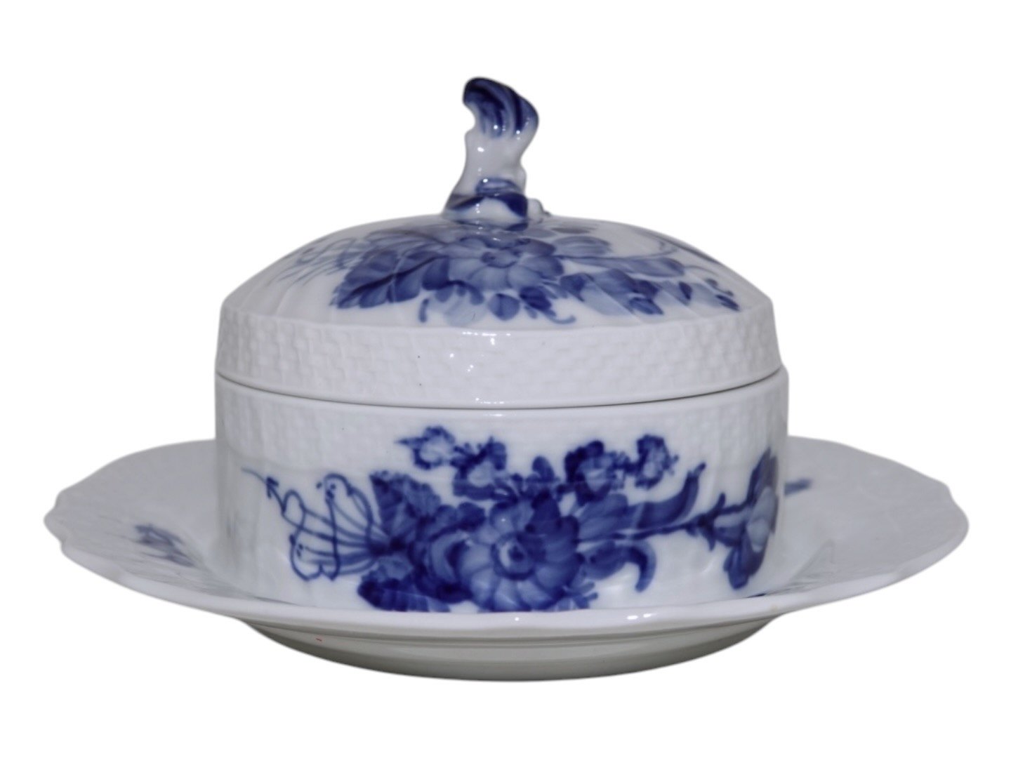 Royal Copenhagen Blå Blomst Svejfet, smørskål på fast fod.
