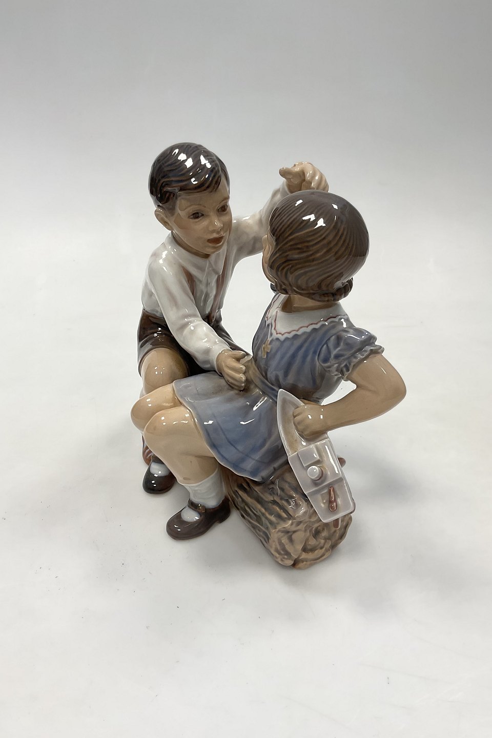 Dahl Jensen Figur Pige og Dreng med Skib No. 1214