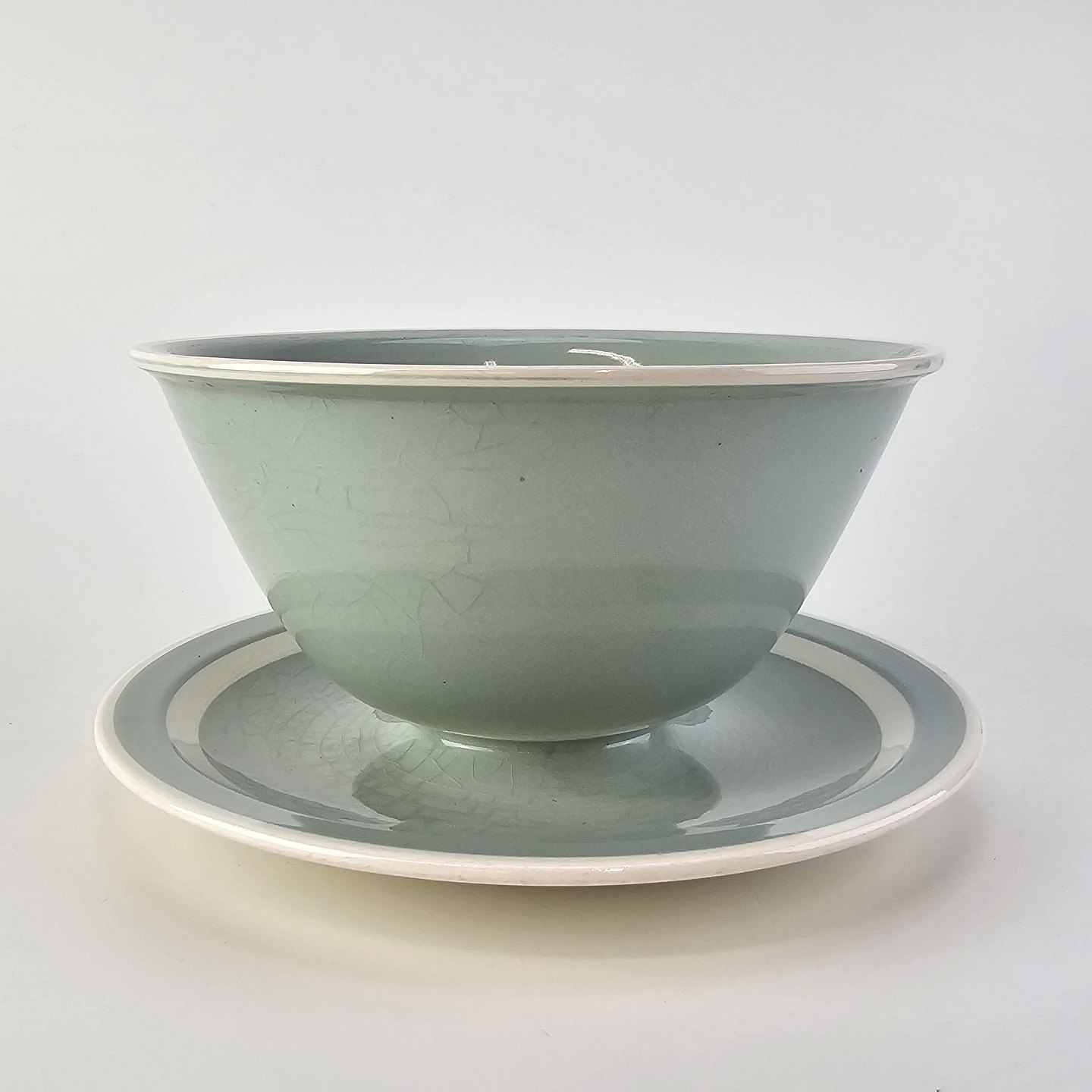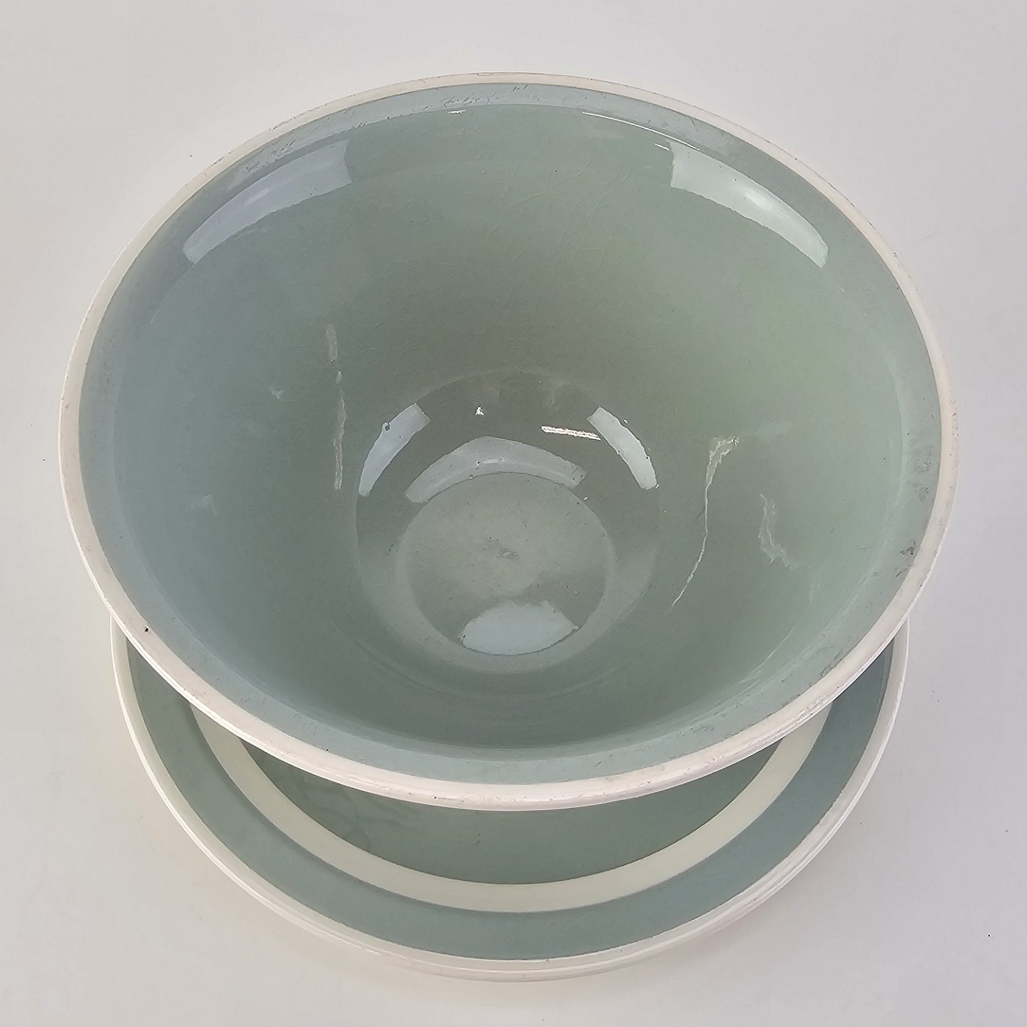 Fajancestel i pastelgrøn farve med hvid stribe