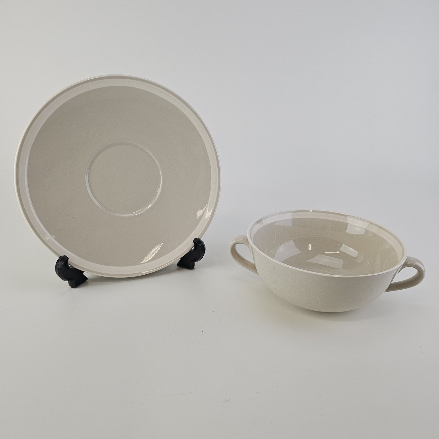 Bouillonkop med underkop i fajance fra stellet Dorrit fremstillet i perioden 1952-1966