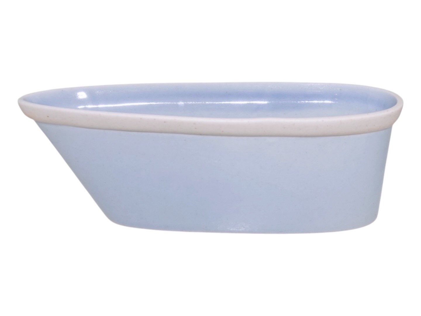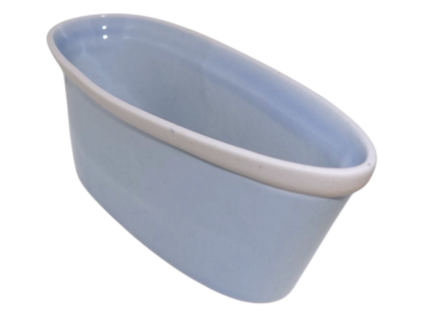 Bådformet lyseblå skål med hvid stribe
