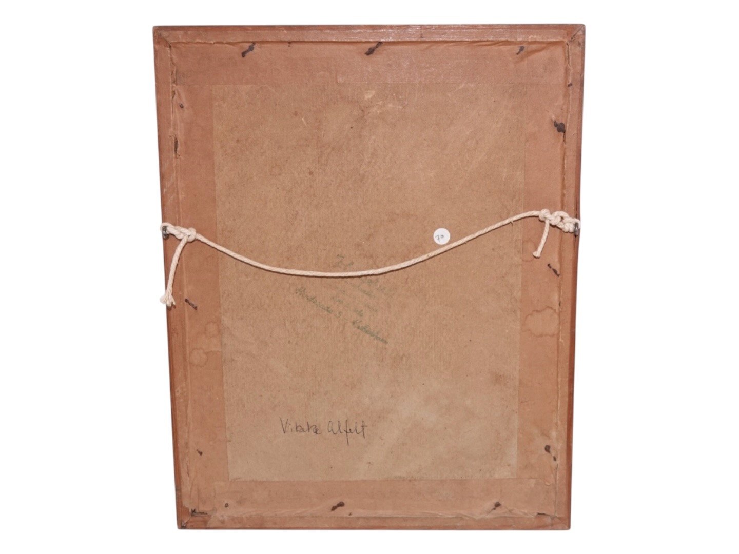 Vibeke Alfelt (1934-1999), tidlig tegning af nøgen dame i træramme og bag glas.