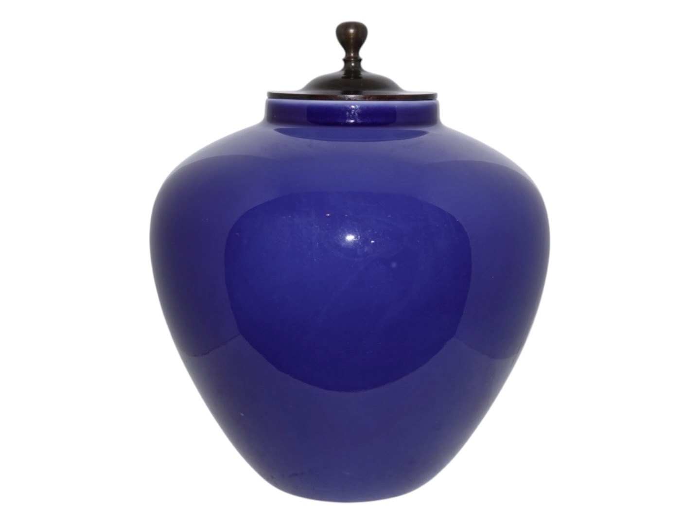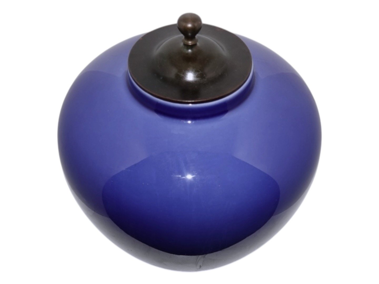Royal Copenhagen porcelæn, stor lavendelblå vase med bronzelåg. Bronzelåget er ikke stemplet og er ikke originalt tilhørende.