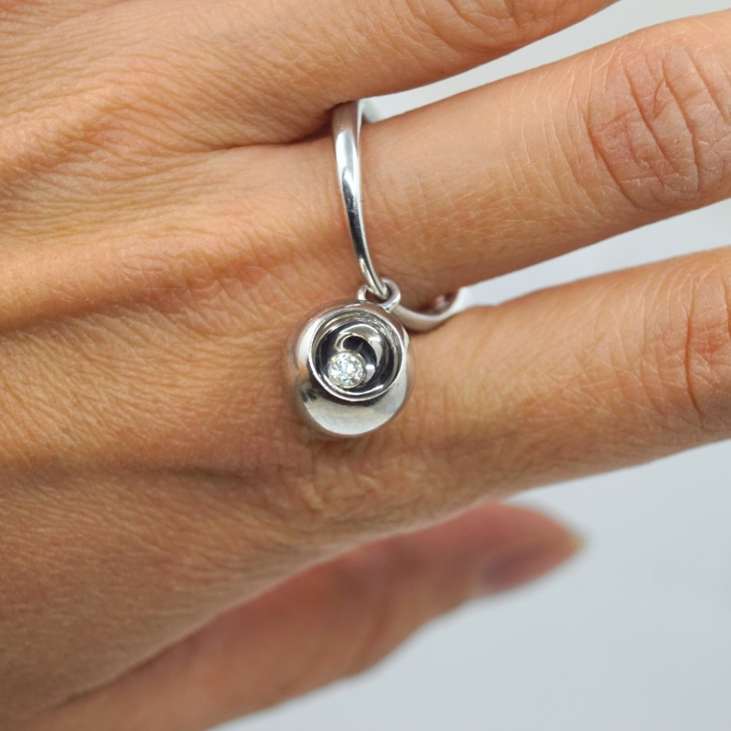 Text zugänglich auf Dänische: Jacqueline Rabun for Georg Jensen; Cave ring 18 kt. hvidguld med diamant