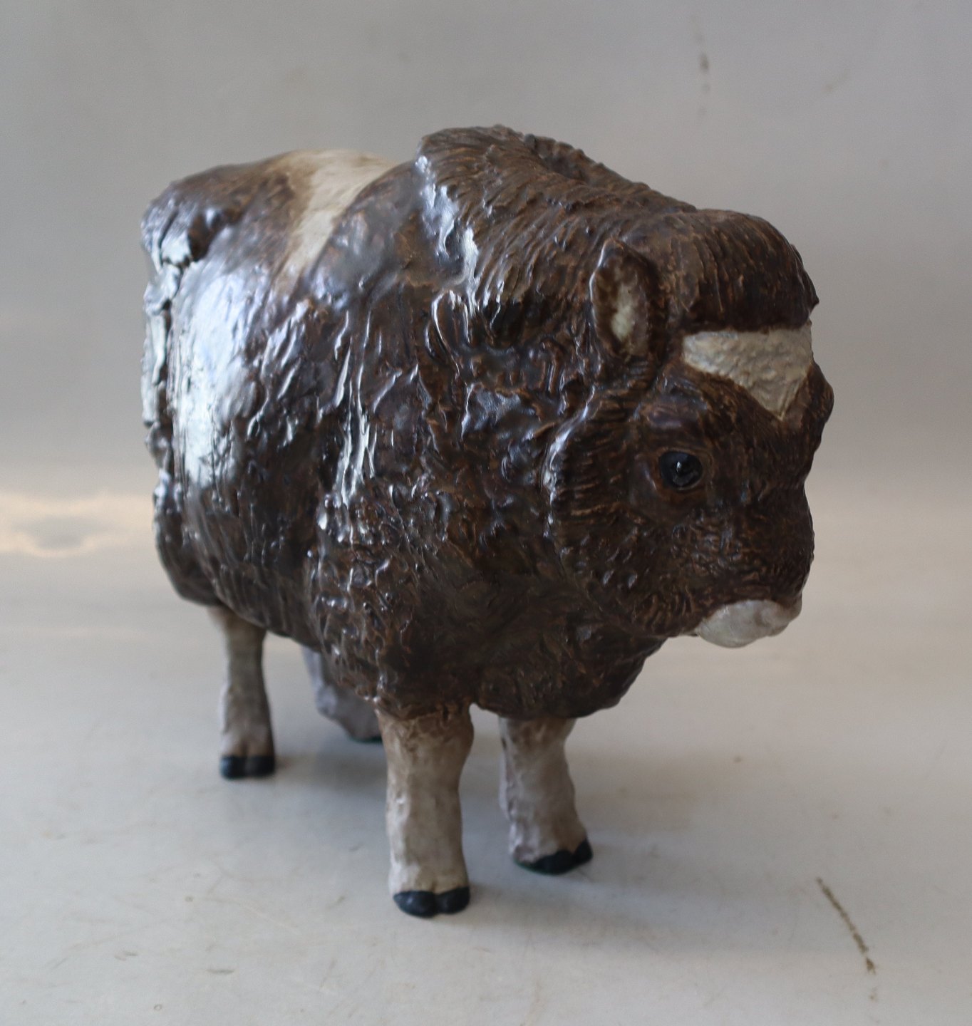 Royal Copenhagen Aluminia fajance 3149 Moskus Okse Jeanne Grut ca. 22 x 26 cm glaseret JG