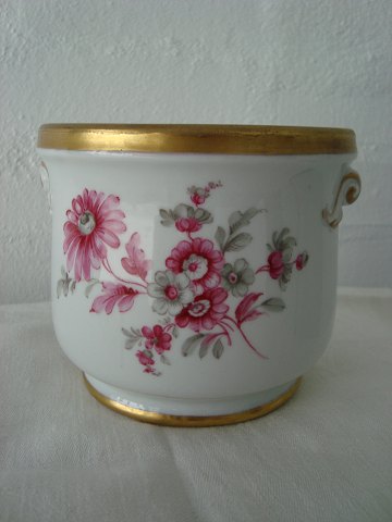 Smuk urtepotte med lækker mat guld og håndmalet rød floral dekoration.