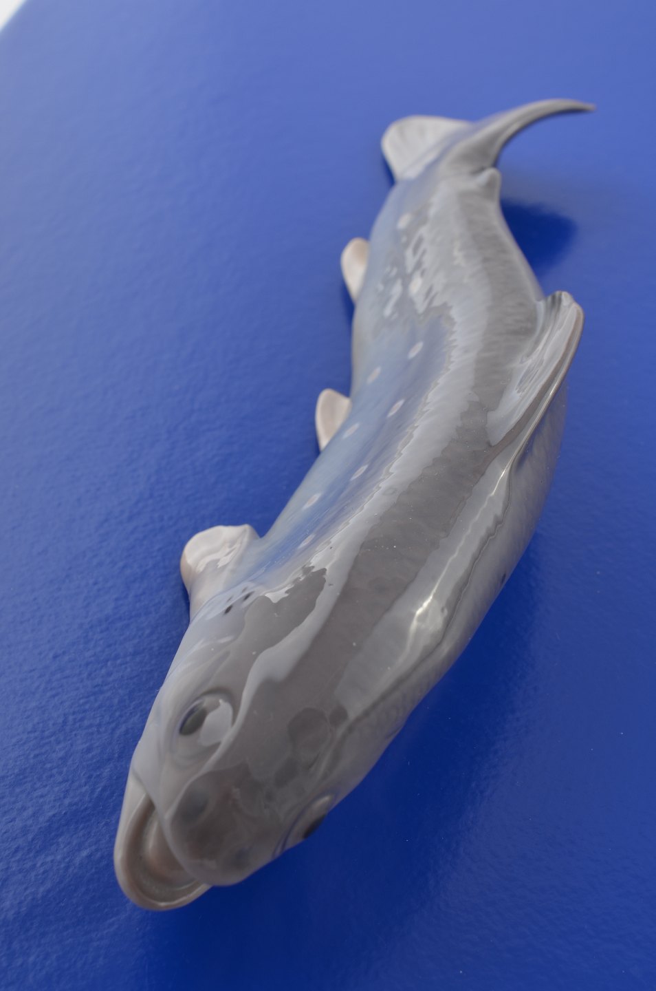 Bing & Grondahl Figurine trout no. 1803. Length 22 cm. 1. quality, fine condition. Artist : Dahl Jensen . Underglaze decoration.