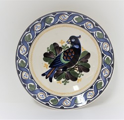 Aluminum. Faience Plate with bird. Model 775-404. Diameter 20 cm.