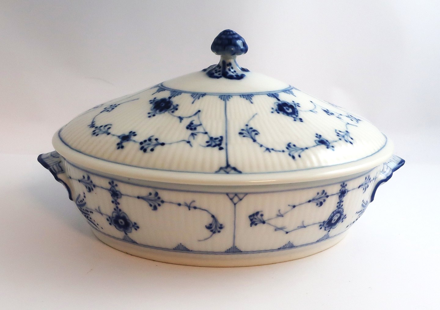 Royal Copenhagen. Blue fluted, plain. Oval lidded dish. Model 405. Length 23 cm. Width 16 cm. (1 quality). Newer lid (see photo)