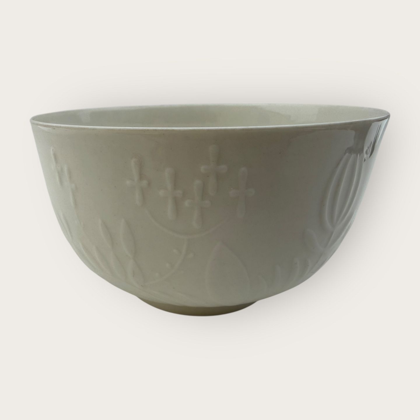 Royal Copenhagen, #4129, bowl in blanc de chine with relief pattern of, among other things, flowers and leaves, diameter 15cm, height 9cm *Good condition*
