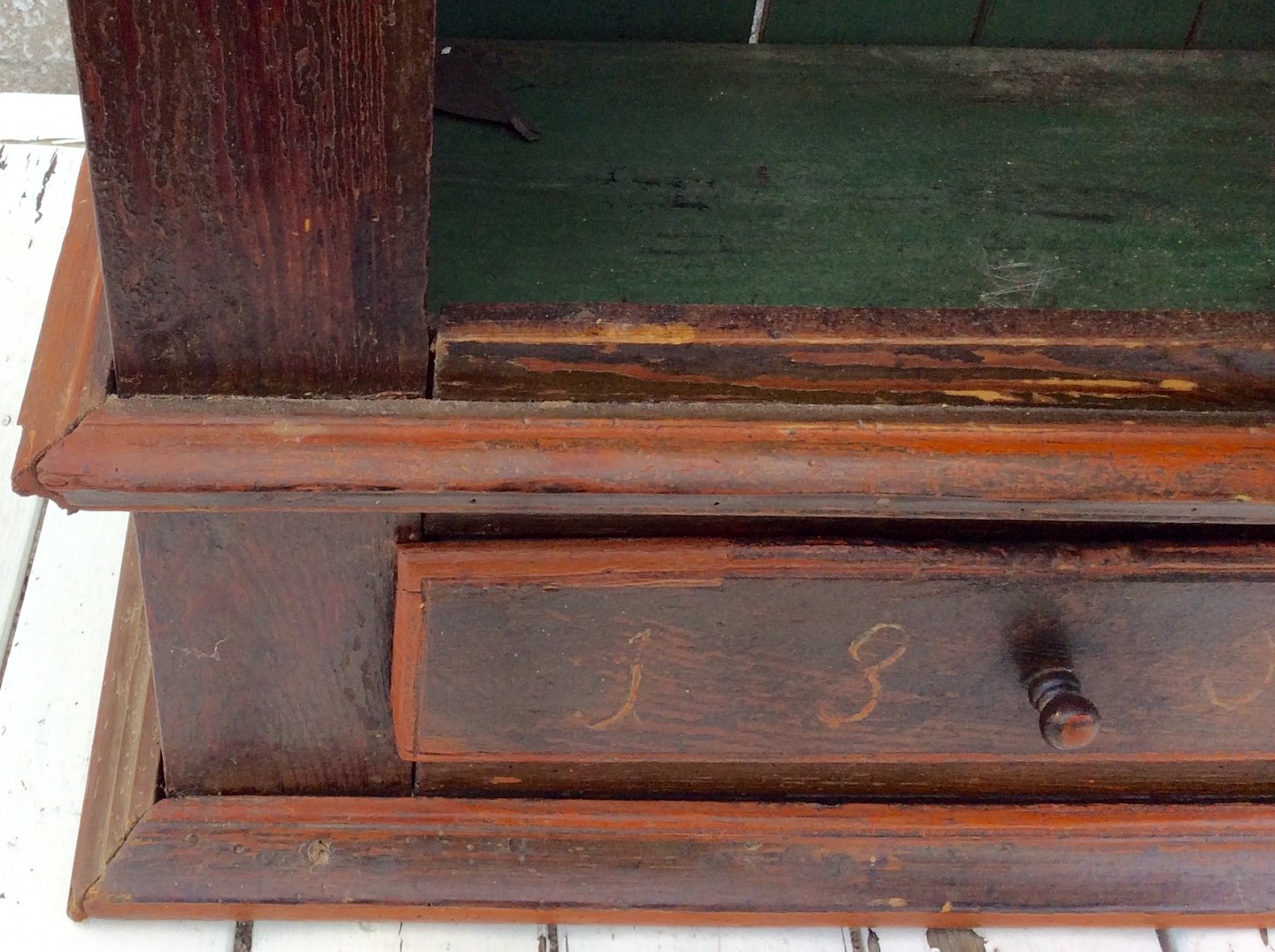 Ältere Bürgerlichen Schrank mit rötlichen Lack 82,5 cm H / 58 CMB / 27cmD * Die altersbedingte Patina hängen *