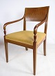 Ein Paar dänische Armlehnstühle im Empire-Stil aus handpoliertem Mahagoniholz mit Intarsien in der Rückenlehne, datiert um die 1920er Jahre.