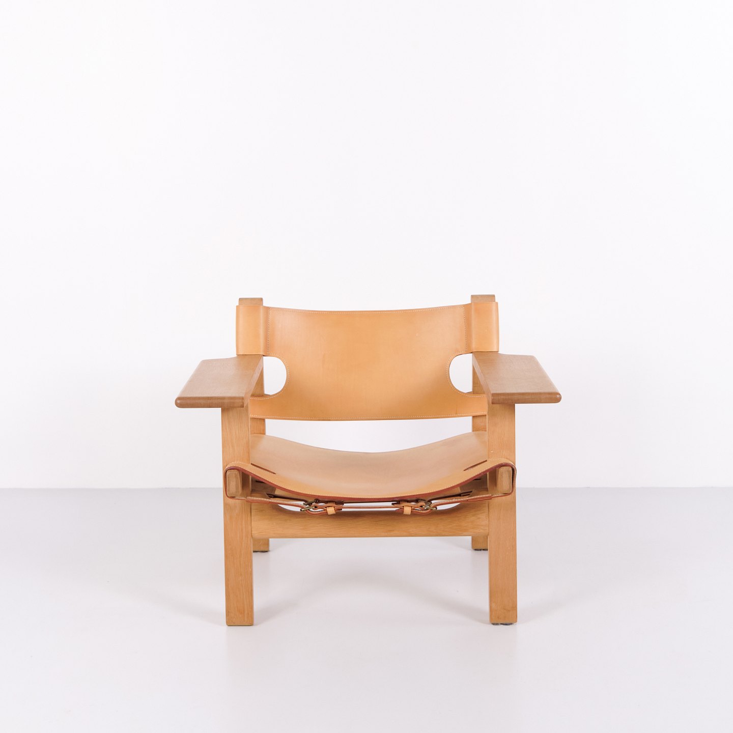 Børge Mogensen Der Spanische Stuhl Modell BM2226 aus natürlich patiniertem Kernleder aus den 1960er Jahren. Klassische dänische Designikone mit robustem Ausdruck.