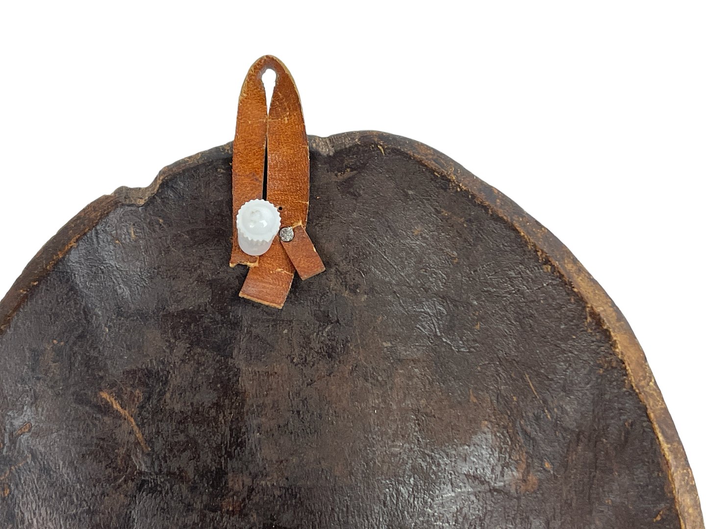 God stand med brugsspor, herunder knækket strop, der sidder fast med en tegnestift.