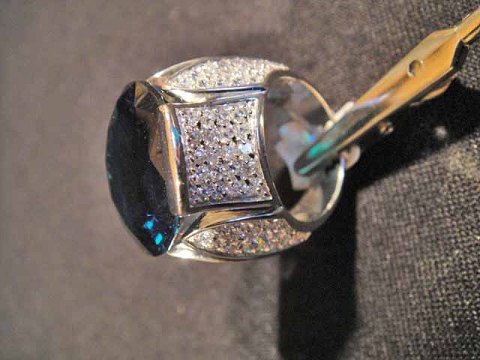 Ring mit großen blauen krystal.siderne mit zahlreichen Brillanten Kristallen verziert.