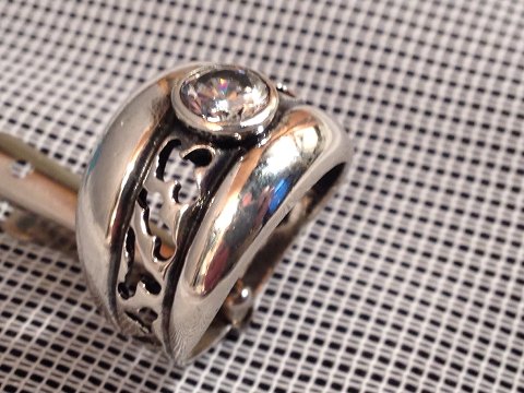 Silver ring. with diamond cut quartz. Silver 925 Ring size: 56