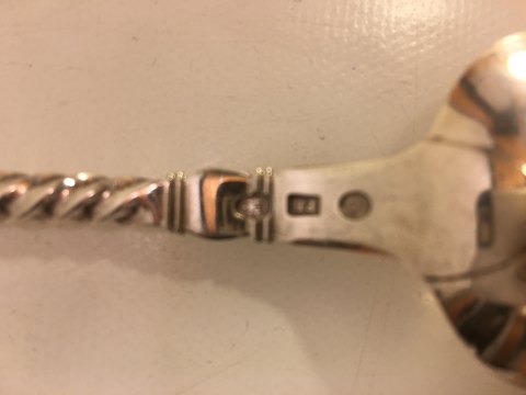 silberner Löffel mit verdrehtem Schaft und Gesicht.