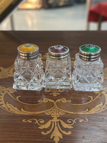 Kristallsalzstreuer, Sterlingsilber mit Emaille, Art Deco, 1920er Jahre, schöner und guter Zustand