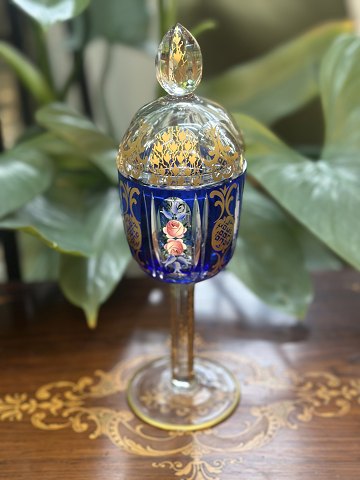 Böhmische Kristallkelche mit Deckel aus Überlaufglas, handgeschliffenem Bleikristall, Emaille und Gold, aus der Zeit des Rokoko. Höhe 18 cm
