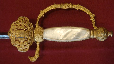 Schöne dänischer Offizier Schwert in Gold und Perlen besetzt Griff und die Klinge dekoretet embedded