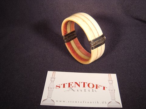 Elfenbens Armbånd med sølv monteringer udv. dia 6 cm indv dia. 5,5 cm Bredde: 2,3 cm