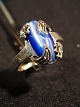 Ring med blå safir ca 0,40 ct og hvide zirkoner
