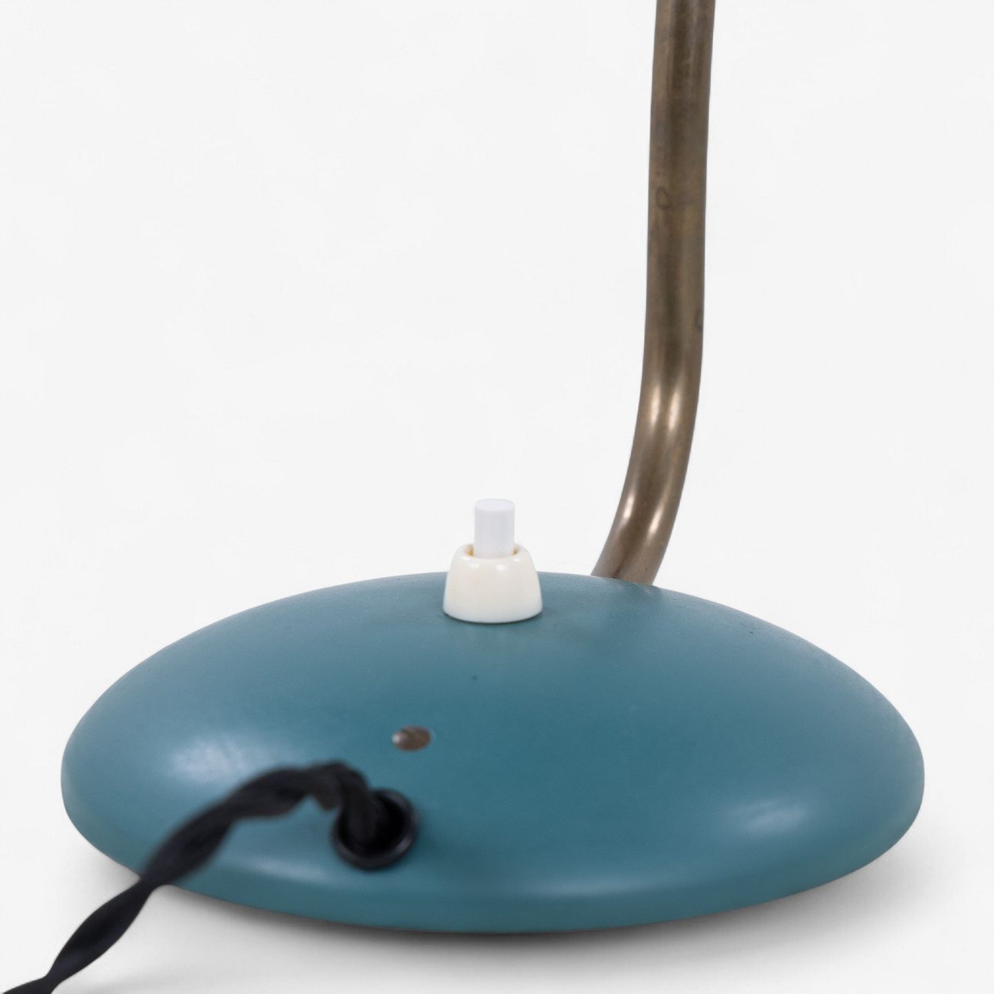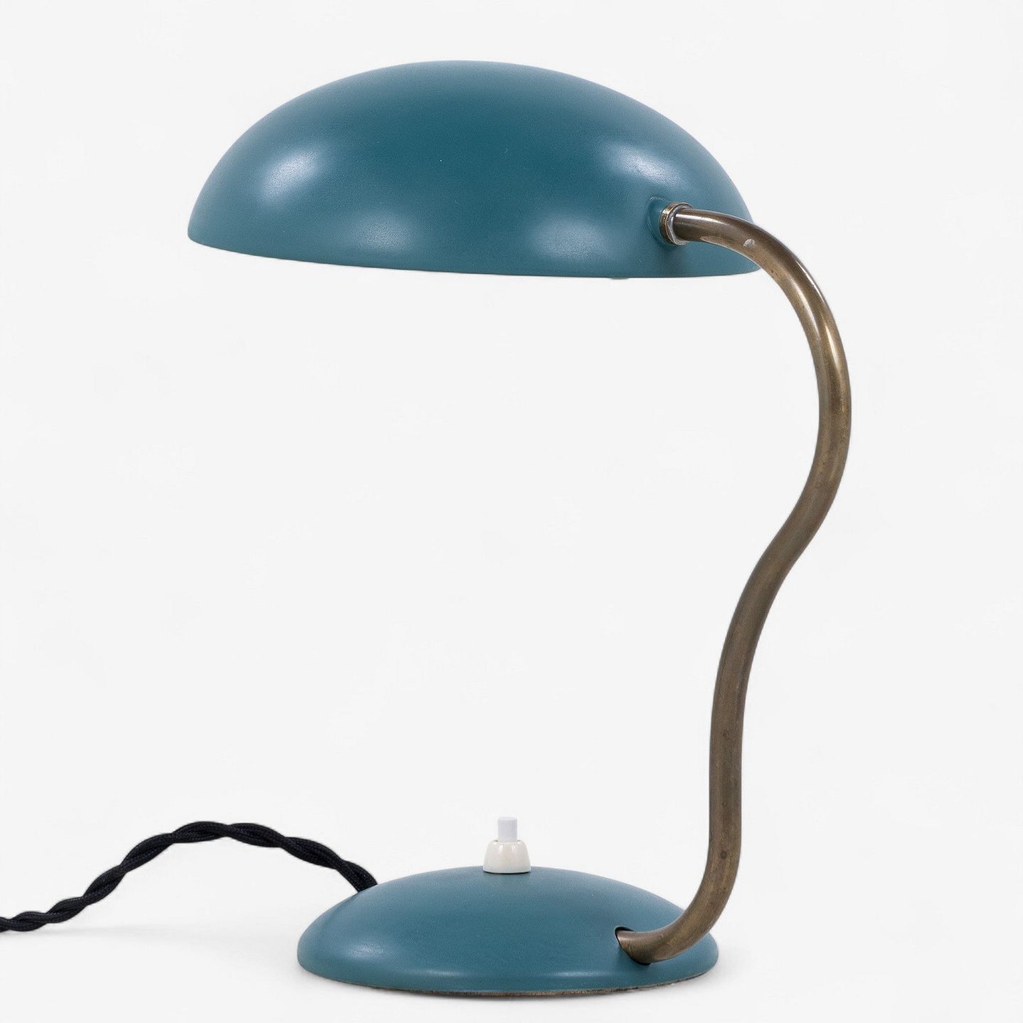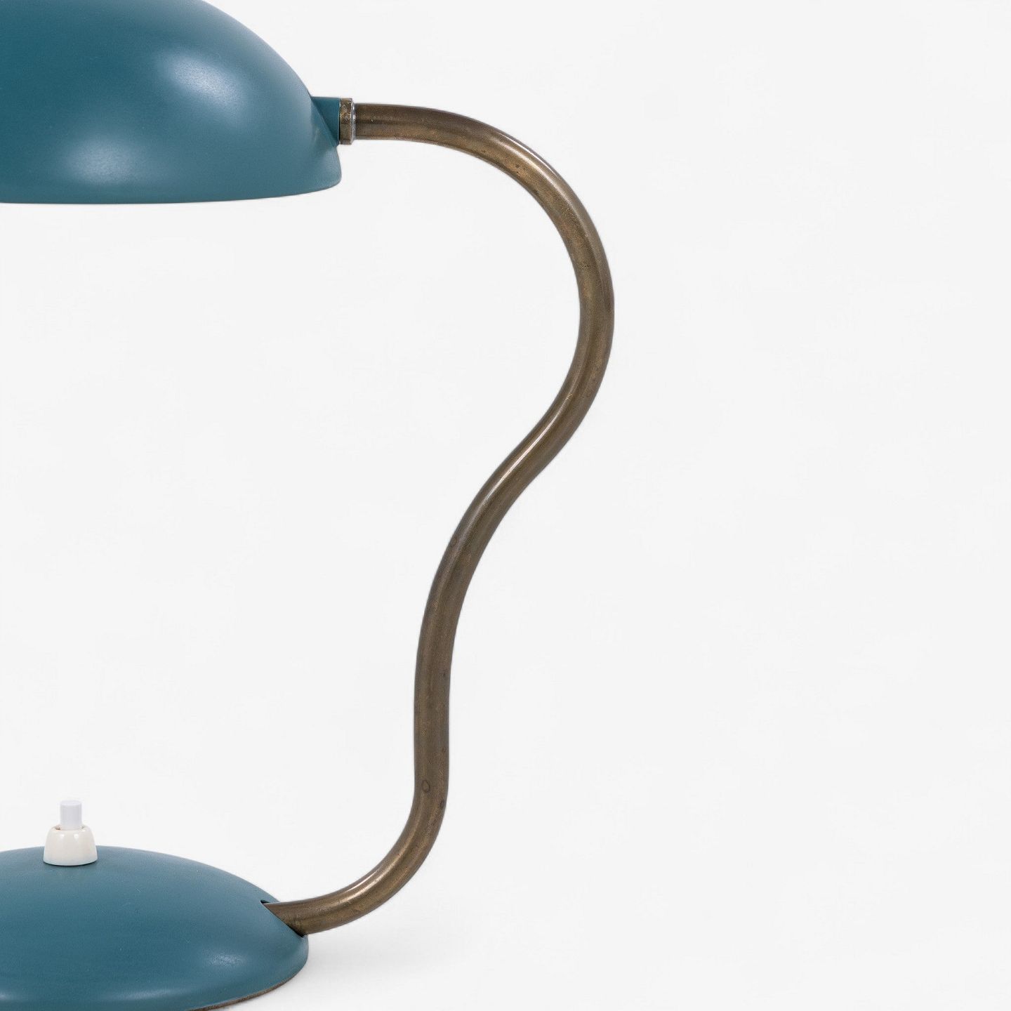 Model E1325 - Bordlampe i grønlakeret metal med justerbar arm i messing.