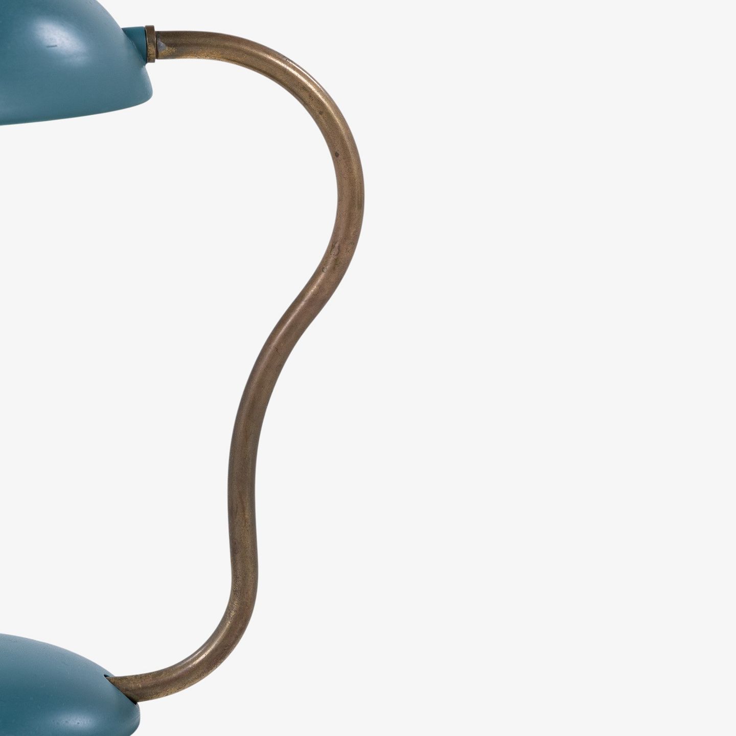 Model E1325 - Bordlampe i grønlakeret metal med justerbar arm i messing.