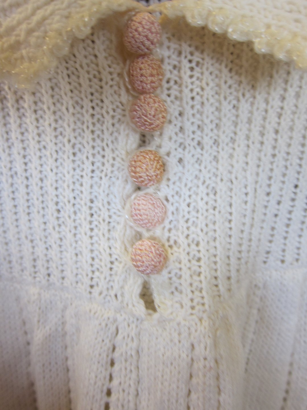 Altes strickkleid (handgestrickt) für das Kind mit gestrickten Knöpfchen