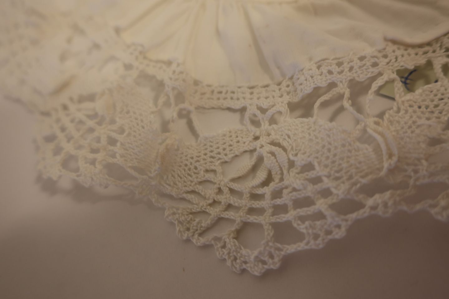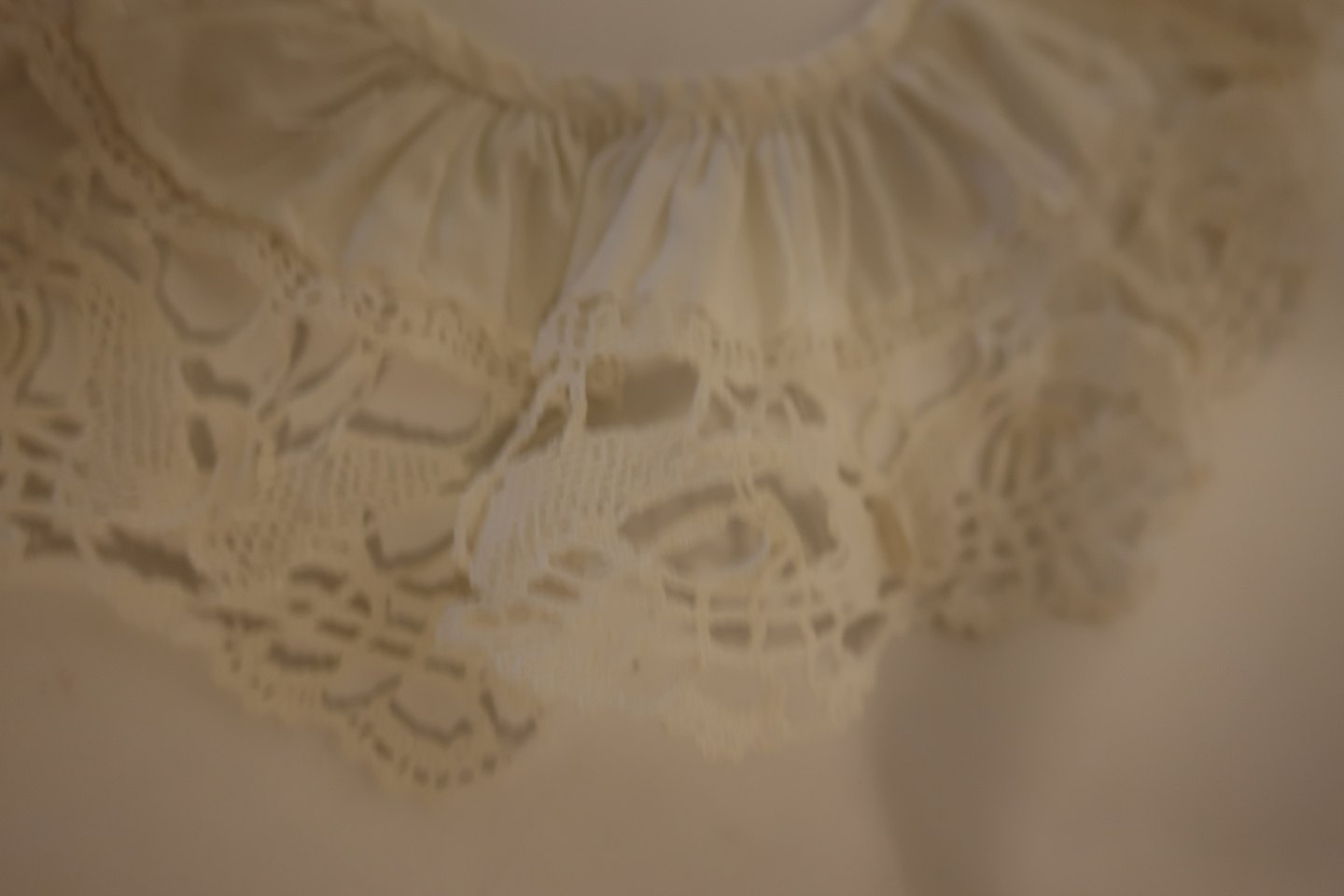 Der Kragen für das Kind ist mit schön geklöppelt (Spitzen) Kant mit Schmetterlingen und aus die guten alten Zeiten