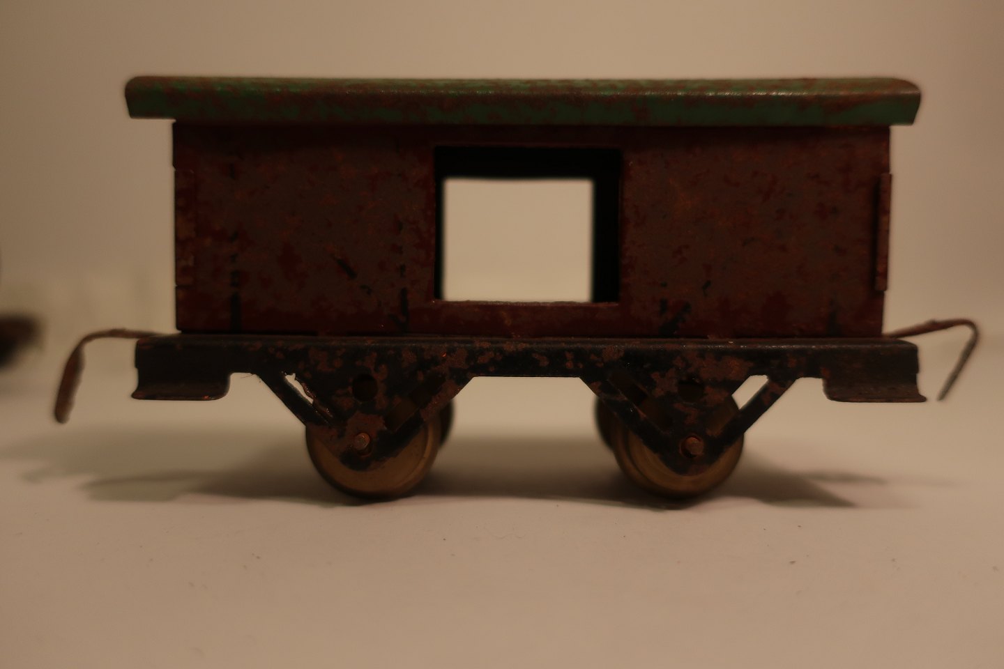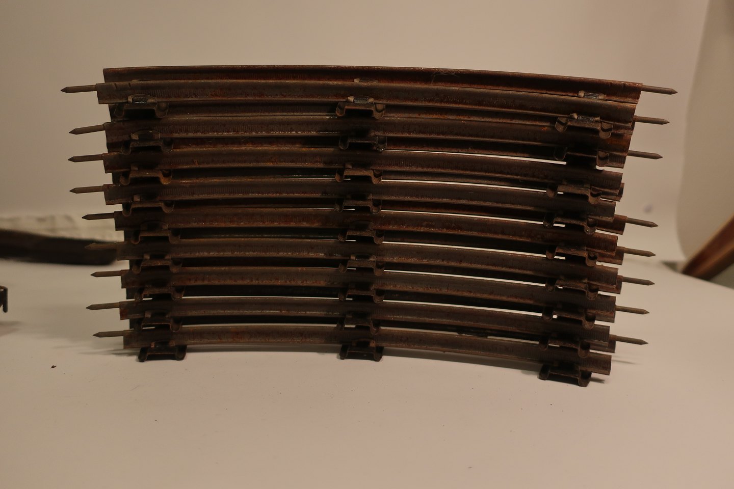Pioner Ekspressen Vintage model el-Zug Lokomotive, Tender, 3 Wagen (von denen 1 Castrol Lubrigation Service) uns Schienen 9 bogenförmig + 4 gerade (mit Rost) OBS: Mit Broschüre Von Knud Petersen Kbhvn S Varennr.: 4-0276